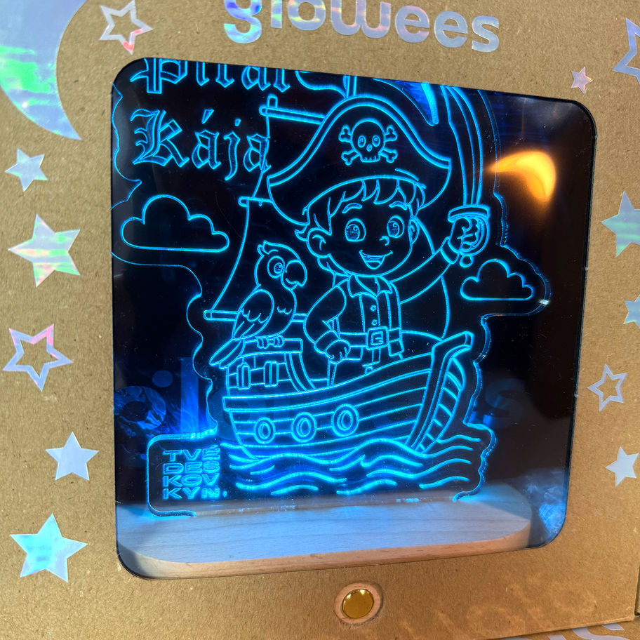 Originální světelená dekorace s motivem piráta s loďkou a jménem dítěte.