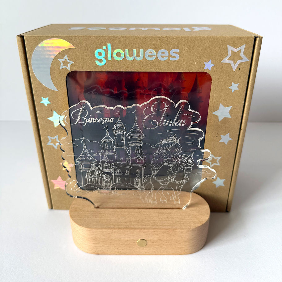 Originální světelená dekorace s motivem princezny a jejím jménem, zámkem a koníkem.