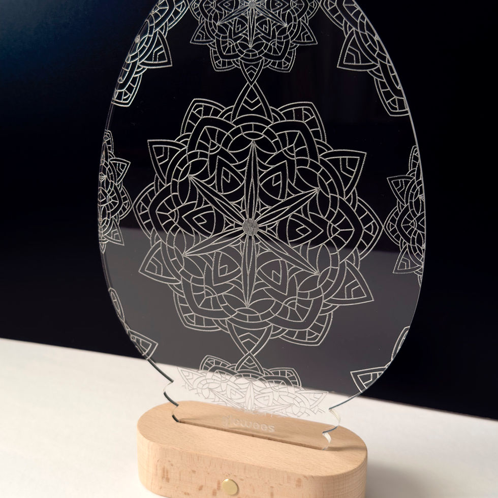 Panel je usazen v kvalitním bukovém dřevěném stojánku, který obsahuje zabudované osvětlení, díky kterému bude panel krásně zářit. Světlo je napájeno 3 ks tužkových baterií typu micro AAA a tématické osvětlení si můžete sami navolit podle nálady. Vybírat můžete z 8 barev a dvou automatických režimů.